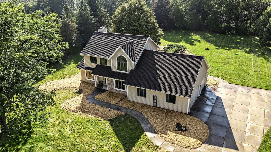 Nestled on nearly 1.5 Acres in the desirable country subdivision of Monches Heights, you'll find this tastefully updated Colonial! Open Concept Kitchen & Dining area w/stainless steel appliances & hardwood floors. Bright, spacious Family Room with gas fireplace and french doors to Living Room. Den/Dining Room. Half Bath and Laundry Room w/walk-in closet complete the 1st Floor. Upper level features a huge Owner's Suite w/walk-in closet and bathroom. Two additional bedrooms and full bath. Lower Level has finished Rec Room for those Packer parties! 6 Panel doors throughout. 3 Car Garage. Gorgeous wooded & private backyard! Some updates include new central air, flooring, bathrooms, custom closets & freshly painted. All you need to do is move in, unpack and enjoy this beautiful property!