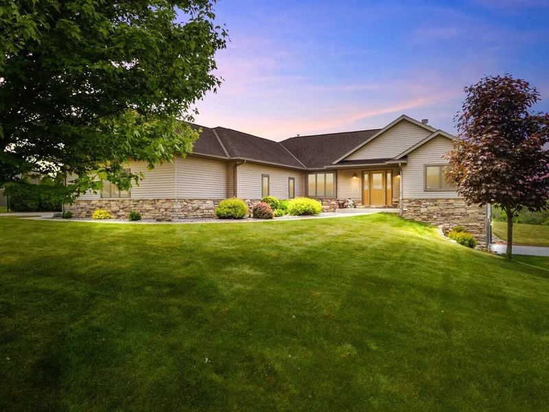 Expect to be impressed as you enter this custom built ranch, meticulously maintained by the original owners! Beautifully tiled foyer leads to a open concept floor plan. Living room features natural fireplace & cathedral ceilings. Spacious kitchen w/birch cabinets, stainless steel appliances & dining area w/patio doors. Owners suite w/tray ceiling, walk-in closet, gorgeous bath w/dual sinks, tiled walk-in shower w/body jets & air tub. Sitting area, 2 additional bedrooms, full bath & laundry complete the 1st floor. Exposed lower level features family rm w/gas fireplace,patio doors to stamped concrete patio, bar area, full bath,den,office & storage. Attached 3 car & new 2 car detached garage. Red elm hardwood floors, 6 panel doors, 3 heat zones. Beautiful yard w/pond set on 2.4 acres! WOW!
