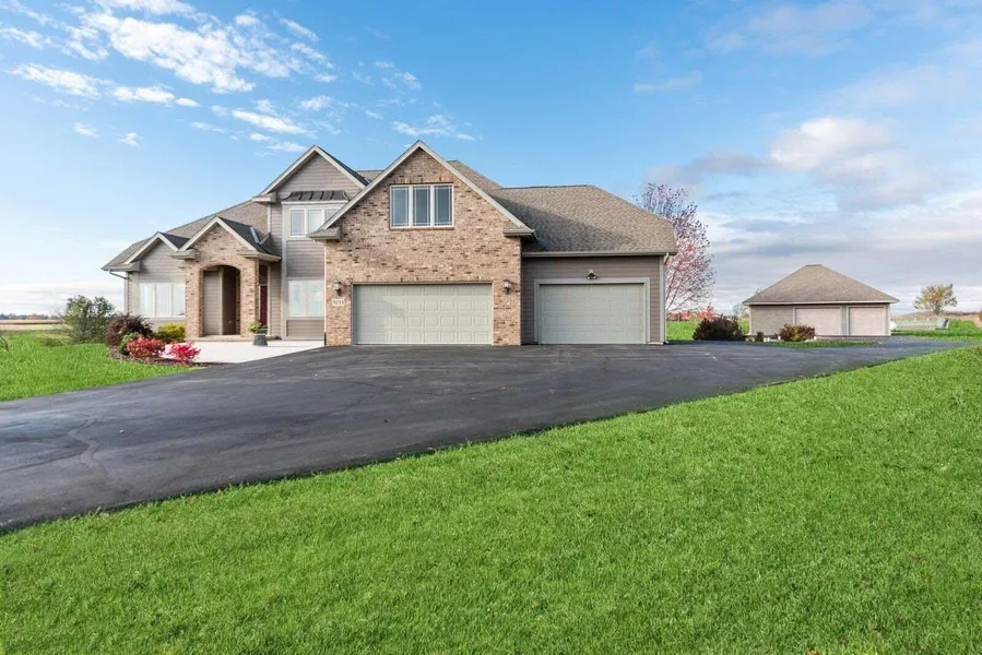 Absolutely stunning 5 bedroom, 4.5 bath, custom built home on 3.1 acres. 36x32 spacious detached garage with water, electricity & plumbed for in floor heating. This 5200 sq. ft. home has a beautifully finished lower level with handcrafted bar, game rm, family rm with gas fireplace, bathroom and bedroom. Quality finishes show throughout the home. Luxury, main floor master suite with ceramic tile and jetted tub. Two gas fireplaces, vaulted ceilings, Built in sound system, garage access to lower level. Awesome views of setting sun from expansive wall of windows and two decks. This 3 acre parcel includes mature trees, fruit trees and vegetable garden. Furnace & A/C new in 2022, Water Heater new in 2023. Move-in ready.