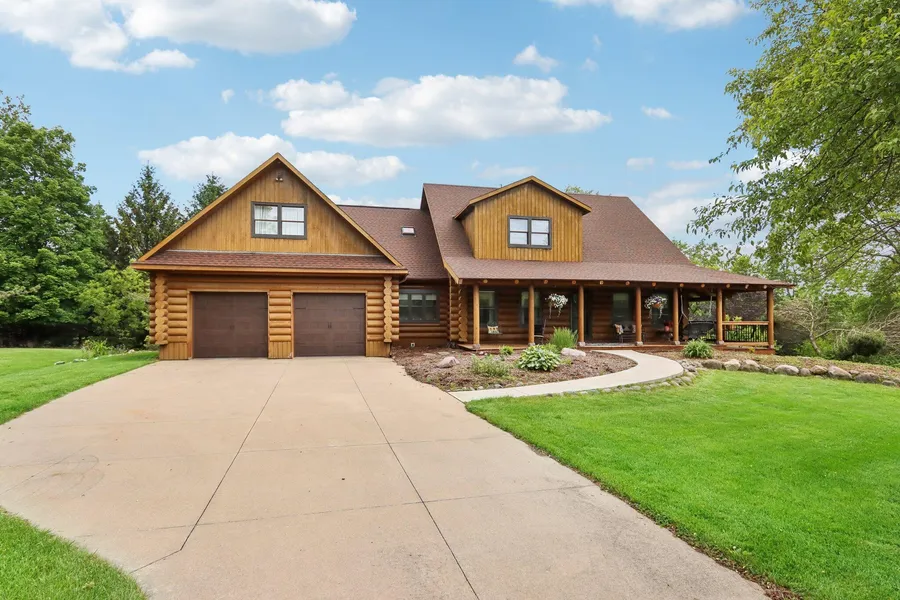 Welcome Home to this gorgeous custom built full log home situated on 2 acres right near the beautiful Kettle Moraine state forest! Step inside to an open concept free flowing main level with vaulted knotty pine ceiling, Cyprus wood-floors, main floor office, gas fireplace and so much more! Kitchen includes new custom cabinets, subway tile backsplash, granite countertops, and all new SS appliances. Upper level features 3 large bedrooms including master suite with ceramic tile flooring and walk in shower. Large wrap around covered porch for your morning coffee. New privacy fence in back yard keeps your furry friends in. Partially exposed and finished lower level includes full bath, workshop and rec room. Schedule your showing today!