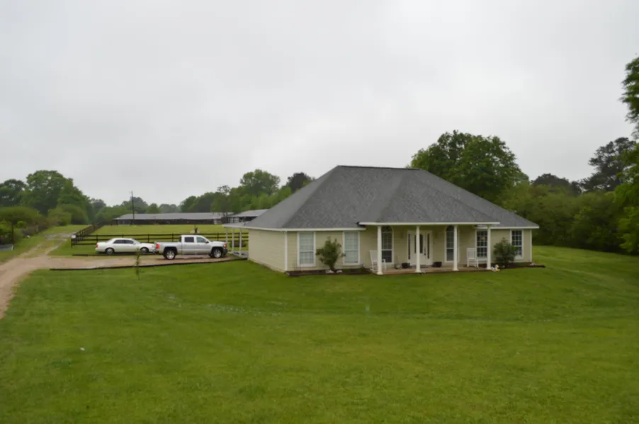 Nice Home on 6 acres. This house has all new flooring, Crown moldings, 15' ceilings, and a tankless water heater and a home office. Lots of porches. The property also includes 2 very large barns, a boat/tractor shed and a fish pond