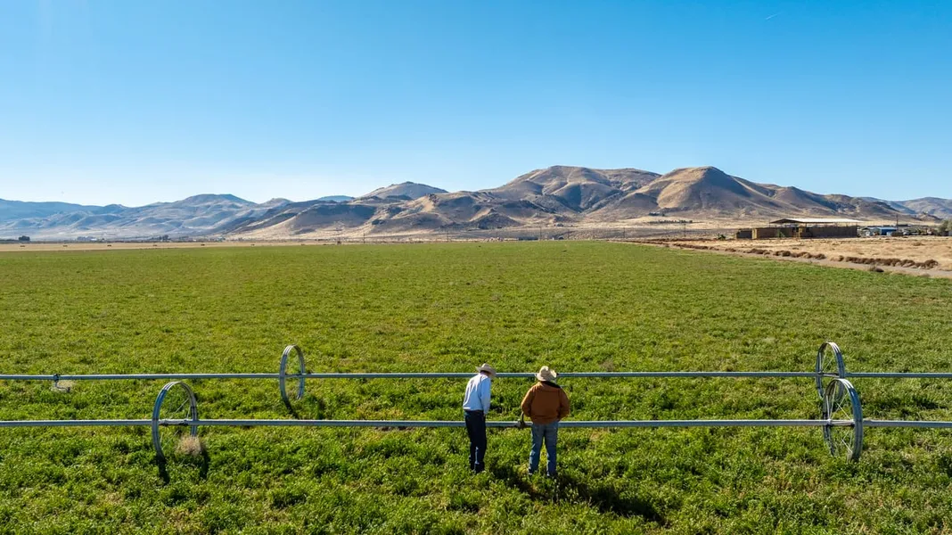 The *710.97* acre Palomino Farms stands as a cherished agricultural hallmark of the Palomino Valley, located just a 8-minute drive north of Sparks, NV and 30-minute drive to Reno, NV, one of the fastest-growing metropolitan regions in the United States. Palomino Farms is a multifaceted and innovative farm with high-quality alfalfa and alfalfa orchard grass mix production at its heart. 220.60 irrigated acres under one Zimmatic and one Valley pivot, coupled with 46.25 acres under wheel line irrigation, produces approximately 4.2 to 5.35 tons per acre of alfalfa orchard grass mix and 3.55 to 4.3 tons per acre of high-quality alfalfa. There is future capability for the one Zimmatic pivot to provide an additional 49.4 acres of pivot irrigation. The crop is bolstered by 1,268.15 acre feet of underground water rights, two 600+ ft. ag wells, and two 150 HP pumps for each. Additionally, there are approximately 394.72 acres of rangeland to boot. Home sweet home is a comfortable 1,100 sq. ft. updated three bedroom, two bath home with lawn, including a large kitchen with stainless steel appliances, and a cozy living room. Ranch infrastructure includes a pole hay barn, equipment shed, shop, and outbuildings. It’s extremely rare to find such a productive alfalfa farm with enviable water rights and buildable lots in Washoe County. Come discover the endless opportunities with Palomino Farms!