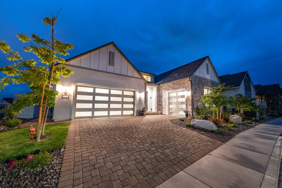 This turn key one level home is in the exclusive gated Rancharrah community. Residents enjoy walking and biking trails, ponds, and views of Mt. Rose. Club at Rancharrah amenities include Nineteen 57 Bar & Restaurant, The Spa & Nail Salon, fitness center with daily classes, locker rooms, a sauna, a board room, pickle ball, bocce ball, and a fabulous resort style pool and spa. Indoor riding arena and equestrian facilities on site. Located adjacent to restaurants and shopping at the Village at Rancharrah. A grand foyer welcomes you home with soaring ceilings, opening to a great room with a covered patio beyond. The spacious kitchen features a large center island with breakfast bar, Kitchen Aid appliances including fridge, plenty of counter and cabinet space along with a walk-in pantry. The luxurious primary bedroom suite boasts dramatic floor to ceiling Hunter Douglas draperies and remote control blackout shades, a huge walk-in closet and spa-like bathroom with dual-sink vanities, glass-enclosed shower with seat, linen storage, and private water closet. Secondary bedrooms have top down bottom up Roman shades and en-suite full baths. Gorgeous luxury lighting throughout. Floor to ceiling Hunter Douglas draperies in the great room and remote control light filtering shades in the dining rooms. Grand piano in the den can stay if a buyer wishes. All new landscaping with water feature is very low maintenance. This lot is securely located in the center of the neighborhood and has larger side yards than most, with plenty of room to have raised garden beds on the sunny side. This home faces the best direction, taking full advantage of morning light in the kitchen and living areas and afternoon shade for the covered porch. Seller will pay for recent neighborhood assessment of $1800. Seller is a licensed real estate agent in Nevada.