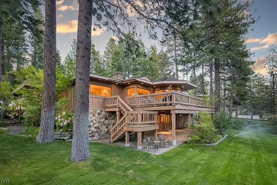 Tucked behind lush landscaping, this spacious home is hiding across the street from Burnt Cedar Beach. An elegant single level home w/ a central courtyard for wind-free summer nights. The yard is fully fenced & this wraps around the E side of the home. Massive concrete patio off the lower level & 1 of the largest lake view decks you have ever seen. 4 bedrooms on the main living level & no steps from the driveway+ garage. Includes remodeled chef's kitchen w/ peek views of the lake, formal living room, dining room, family room, breakfast nook, full bar + laundry room & 2nd hall laundry hookups. Downstairs 5th bedroom being used as a 2nd family room w/ access right out to the grassy back yard, full bathroom, lots of storage, wine cellar + bomb shelter tucked under the home. Looking to create memories w/ your loved ones? You will not find a better location than this. Play with pets or host a...