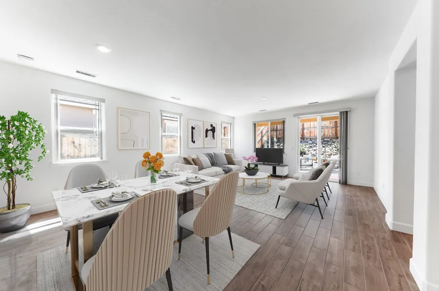 Look no further, this is where modern comfort meets functionality! This single story home enters into an inviting foyer that leads into a multi functional den, office or formal dining room. The upgraded tile porcelain floors give the illusion of wood but are very durable. The heart of the home is the kitchen and great room. The open living area provides lots of natural light and higher ceilings. The kitchen features a large island, double sink, gas stove, refrigerator, microwave and a brand new dishwasher. Pride of ownership shows in what feels like new throughout. The spacious pantry allows for lots of storage. The primary bedroom has brand new carpet and an en suite bathroom with double sinks, shower, tub and a walk in closet. The well maintained landscaping all around the house features shrubs, roses, an Australian pine tree and Red Twig Dogwood all on full drip system in front and back. Brick pavers and retaining wall with built in bench offer the perfect spot for a fire pit install. Enjoy your afternoons on the large patio, protected by a privacy fence with rose vines that grow naturally along the fence. The 2 car garage features a Rain Bird irrigation system along with a tankless water heater. Minutes from restaurants and shopping, 20 minutes from the Reno-Tahoe airport and only 45 minutes away from Lake Tahoe.