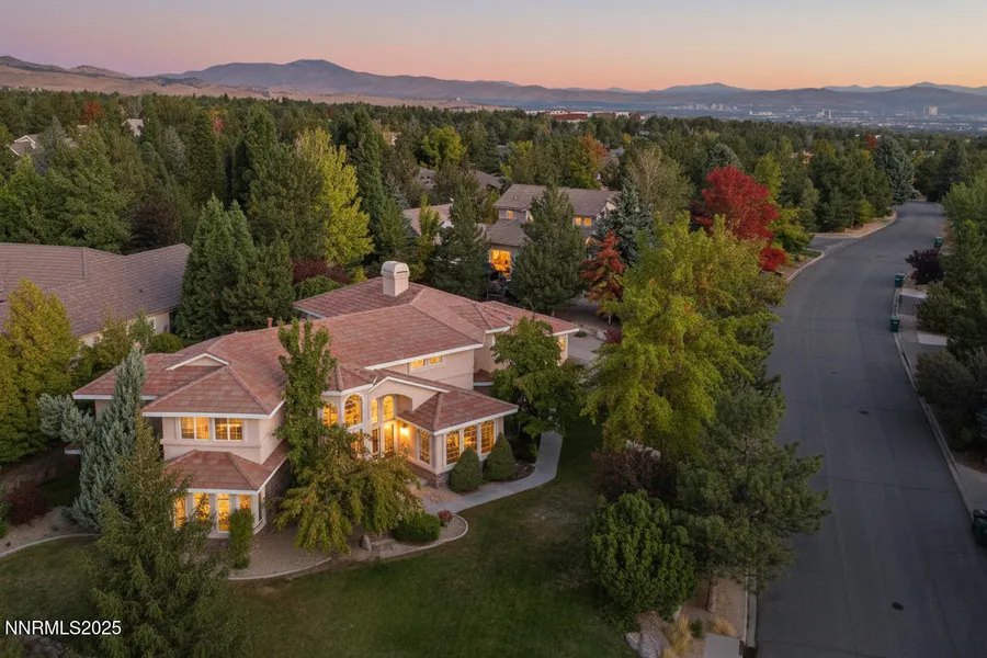 Welcome to this exquisite custom-built home, ideally positioned on a prominent corner lot within the prestigious Saddlehorn neighborhood. This stunning property boasts a breathtaking facade with a blend of contemporary and classic architectural elements, surrounded by large lawns and mature trees that enhance its tremendous curb appeal. As you step inside, you're greeted by a spectacular marble tile entry leading to a..., ... spacious living room, complete with a cozy fireplace and elegant French doors that open out to a serene patio. The home features an open floorplan with high-end bamboo and travertine flooring and new carpeting throughout. The formal dining room is a masterpiece of design with hardwood floors, a new chic light fixture, and a coffered ceiling, creating the perfect ambiance for dinner parties and family gatherings. The heart of the home, the gourmet kitchen, is a chef'...