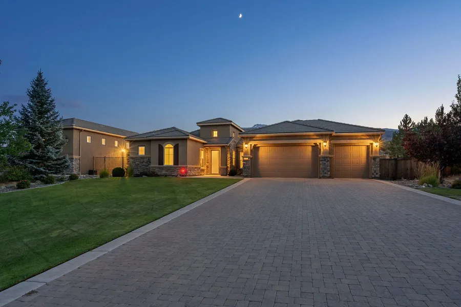 This stunning luxury estate sits on over 2 acres of pristine land, offering breathtaking mountain views. The 3,650 sq ft main residence offers 5 bedrooms, 3 baths and 3 car garage. There is also a 720 sq ft RV garage with attached 2 story living space with full bath. The home offers a “Tahoe” room perfect for entertaining, the kitchen and family areas create a Great room with views and a fireplace. The spacious Primary suite has an added sitting area with direct access to the backyard. Professionally landscaped yard, in ground hot tub, fenced garden area with fruit trees along with open land accessed by a bridge over seasonal creek. Private setting! Enjoy the tranquility of country living while being just minutes away from skiing, golf, Lake Tahoe, and conveniences. Don’t miss the opportunity to own this exceptional home!