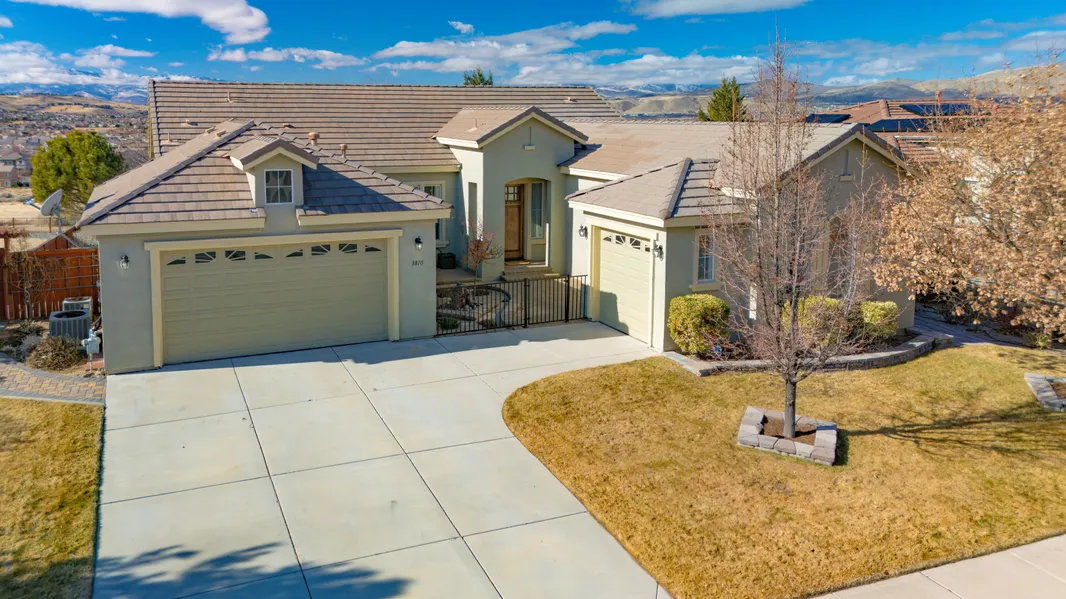 Nestled in a sought-after Wingfield Springs neighborhood, this meticulously maintained 4-bedroom, 3-bathroom home offers breathtaking panoramic mountain views with no rear neighbors to obstruct the scenery. Designed with an open-concept layout, this home seamlessly blends comfort and functionality. The main floor features a spacious primary suite with direct access to the second-story deck, perfect for enjoying sunrise coffee or evening sunsets. An additional room on this level provides versatility as a guest space or office. The lower level boasts two more generous bedrooms, a full bathroom, a generous recreation room, and two expansive storage spaces - each approximately 250 square feet (square footage not included within the listed square footage). Outdoor living is a dream with multiple spaces to relax and entertain. The upper-level deck extends from the main living area to the primary bedroom, while the covered patio below offers shade and views of the lush landscape for year-round enjoyment.