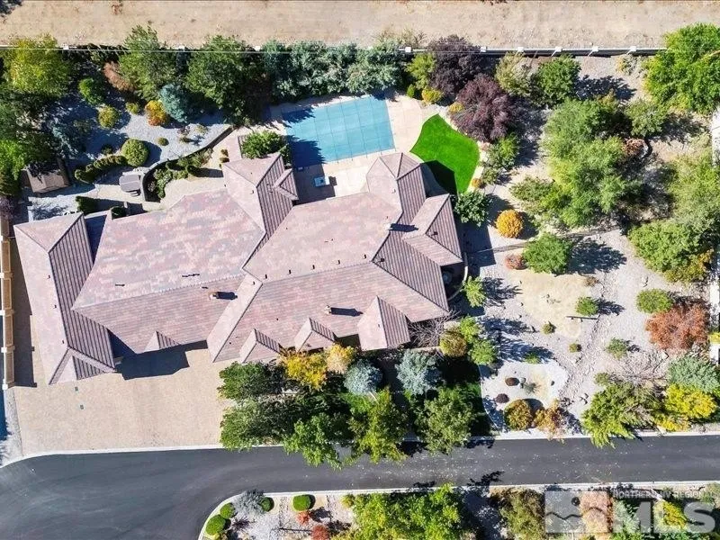 A South Reno Estate That Redefines Luxury Living - With No HOA. If you're looking for a home that offers both Privacy and beautiful Trees, this sprawling single-story estate in South Reno is for you. Step through the grand foyer, and you're greeted by a series of expansive common areas, each boasting luxurious flooring that creates a warm yet sophisticated ambiance. This home seamlessly blends modern upgrades with timeless appeal. And if you're into entertaining, this place has you covered. There's a custom home theater, a wine fridge big enough to keep the collection ready for guests, an in-ground pool, and a garage setup that's a car lover's dream. The kitchen features top-of-the-line appliances, a Wolf range, granite countertops, and opens to a dining area with views of the lush grounds and sparkling pool. And, the kitchen is a chef's dream come to life - complete with stunning cabinetry, sleek stainless-steel appliances, an oversized island, and a breakfast bar. It's got a bit of everything: striking architectural details, a layout that's equal parts cozy and impressive, and finishes that make every room feel like a statement piece. It's the kind of place that invites you to entertain, unwind, and just live without compromise. For entertaining or everyday relaxation there is a formal dining room and a living room. The family room, with its cozy fireplace, opens directly to the pool and gazebo area. The master suite is the ultimate retreat complete with access to a covered patio and proximity to the pool and hot tub. And, of course, you've got separate his-and-her bath areas, with his featuring a steam shower. The oversized closet and adjacent office space round out the suite, making it as functional as it is luxurious. Nestled in an exclusive, gated compound of just three custom homes, this estate offers the privacy you crave with all the convenience you need. Located close to golf courses, major shopping, and fine dining, you're also just 15 minutes from Reno-Tahoe International Airport and 25 minutes from Lake Tahoe. This property boasts construction with insulated concrete forms, meaning superior energy efficiency. Remodeled in 2014 to add a home theater, a private cabana area and expand the RV garage. With three bays plus room for an RV, you've got space for your cars and your next project. If you're not filling it with vehicles, the space could easily convert to guest quarters. Piano is not included in the purchase price but could be sold if buyer desires.