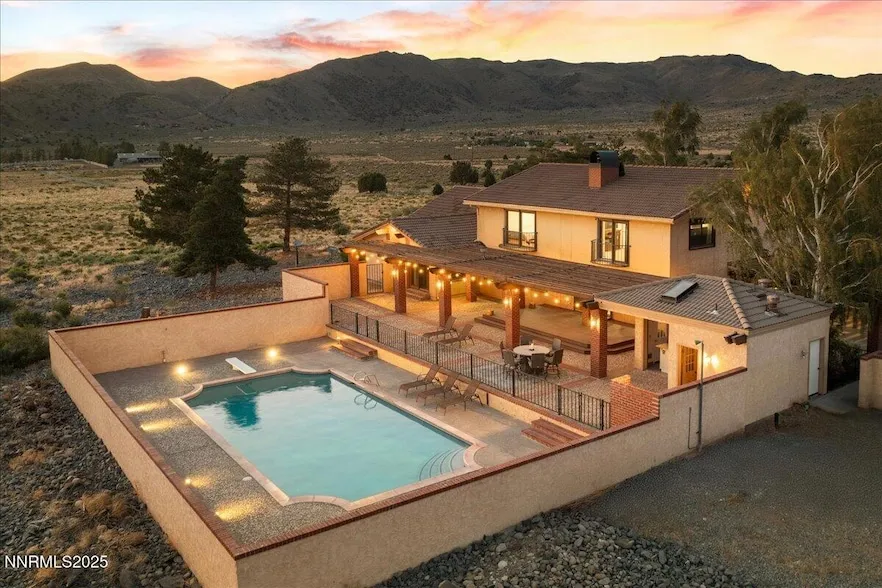 Don't miss an opportunity to purchase this property listed under appraised value. This is not just a property, it is a lifestyle. Live the dream on 43.51 acres of pristine, gated land in the Red Rock Estates. This rare rural estate is horse-zoned, No HOA, and built for the ultimate in privacy, recreation, and luxury. Boasting 4,371 square feet of meticulously upgraded living space, this custom home offers 6 spacious bedrooms, 5.5 bathrooms, and a 3-car garage with room for all your vehicles, gear, and toys. The main floor features 1 primary and 2 en-suites and a bedroom, ideal for multi-generational living or guests. Security shutters that can be lowered for peace of mind. Inside, the chef's dream kitchen is the heart of the home, designed for serious cooking and entertaining. Enjoy a 9-burner gas cooktop with a grill and a premium chef's hood. The primary suite is a true retreat fully renovated with spa-style finishes. Step outside and enjoy a heated outdoor pool, and pool room, ideal for year-round entertaining with unmatched 360 panoramic mountain and valley views. Enjoy complete serenity on your private road, with ATV and off-road access right from your doorstep. This is your chance to embrace the equestrian lifestyle with plenty of space to build barns, arenas, or outbuildings. Whether you're a horse lover, homesteader, or just want room to roam this is the opportunity you've been waiting for.