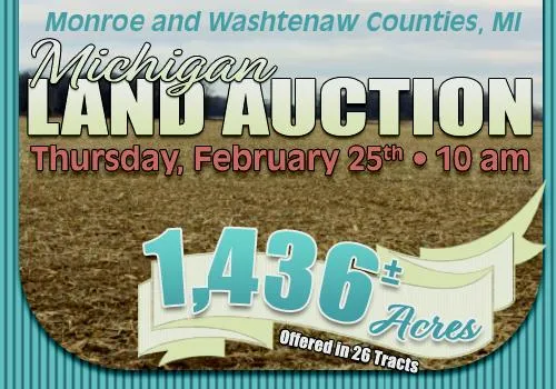 MICHIGAN LAND AUCTION - 1,436+/- ACRES OFFERED IN 26 TRACTS IN MONROE & WASHTENAW COUNTIES, MICHIGAN