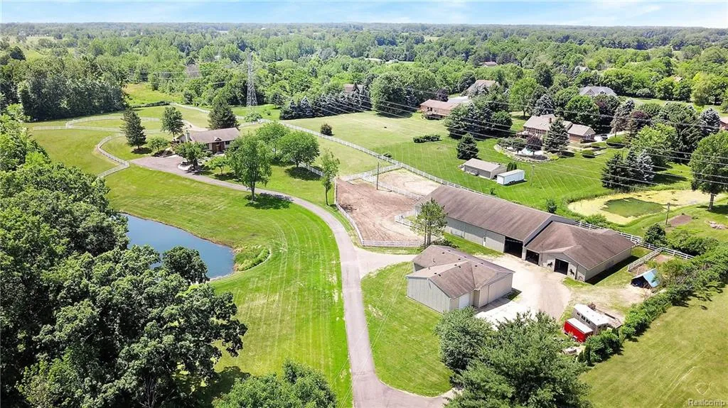 Amazing horse farm opportunity with so much to offer! Beautiful 4br, 3ba ranch on an idyllic setting w/picturesque views. Open floor plan with huge gourmet kitchen, stainless steel appliances, granite counters, & big island. Large vaulted ceiling great room, fireplace-great for entertaining. Huge master suite features large master bath w/double sinks, shower & tub and large walk-in closet. Walk out deck, covered porch & patio. Fenced pastures, stock pond, 96x60 indoor riding arena, beautiful barns, 10 horse stalls, heated 48x30 barn, heated 30x20 workshop, heated garage, & over $100,000 worth of PVC fencing. Northville mailing. One year home warranty included.