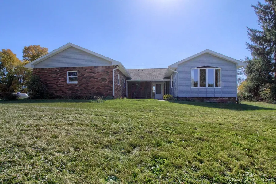 Immerse yourself in nature while sipping your morning coffee on the patio in this hilltop gem. Serene country setting with coveted Saline Public schools and lower Pittsfield Township taxes. Sitting back from the road on a private lane, this 1700-square foot ranch is nestled on 3.66 acres complete with a creek, small orchard and lush, green landscape with mature trees. Numerous updates made this year by the original owner, including new roof with 30 year shingles, septic tank, siding, windows, A/C, water softener, washer & dryer, fresh paint and additional insulation. Transferable warranty on roof, siding and windows. Make it fit your style with a little TLC. This 4 bedroom, 3 bathroom home also features a finished walkout basement with fruit cellar, 2.5 car garage, outdoor shed for gardening equipment, upstairs fireplace and downstairs wood stove. This is a rare find in a great location. Make this motivated seller an offer today! Sale is contigent on seller finding a new residence.