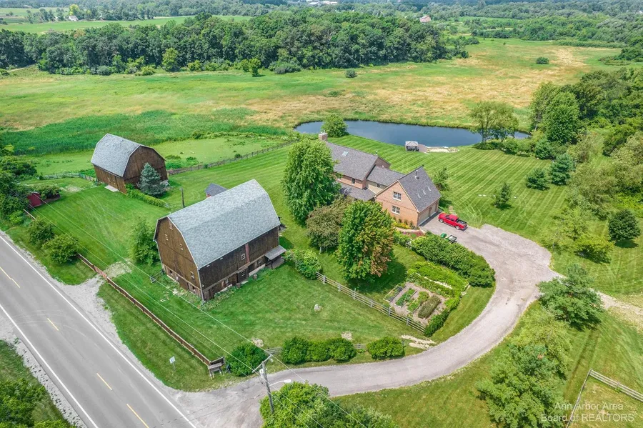 With a legacy that began well over 100 years ago, Misty Farm and homestead is a property unlike any other. This 16.6-acre piece of paradise just minutes from Ann Arbor, Dexter, and Saline, boasts a ~6500 SF contemporary farmhouse, two historic barns used as event venues, a private pond and marsh preserve, and lush fields and pastures. From its humble beginnings as a working farm, this special property has been transformed into the ultimate place to gather and celebrate. Host weddings, anniversaries, retreats, product launches, and more at the established Misty Farm. Welcome friends for horseback rides and pond swimming. Gather your extended family for the holidays, cooking a meal in the expansive chef's kitchen, dining with sweeping views of the countryside, and visiting late into the night with 7 bedrooms and 6 bathrooms to sleep everyone. A fully equipped apartment over the garage can welcome in-laws, tenants, an au pair, or serve as a secluded home office. This estate truly has it all, and all of it has been lovingly restored, carefully created, and conscientiously updated. Schedule a private tour today to experience this exceptional estate in an idyllic setting overlooking the rolling hills of surrounding farms and preserves.