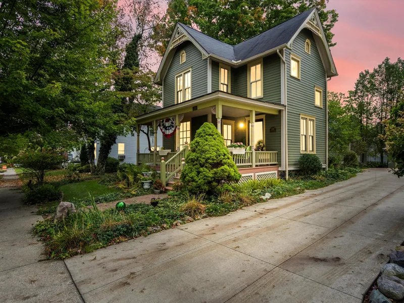 Recognized by the Historical Society of Michigan for maintaining much of it's original Victorian Architecture, this 1898 Michigan Heritage Home has been thoughtfully restored with added functionality. Located just steps from Downtown Chelsea on a mature tree lined street, the decorative front porch and charming Gable trim offer a glimpse of the stunning detail that awaits inside. The floor plan offers nearly 2400SQFT of finishes feat, hardwood floors, formal LR, formal dining, 1st FL primary w/ French doors and tile bath w/ walk in shower, family room, spacious kitchen and convenient main level laundry. 2nd level feat. 3 bed and full bath. Outside your oasis awaits, professionally designed by landscape architect. Updates include: Hardy Siding, Driveway, French Drain, Furnace & More!