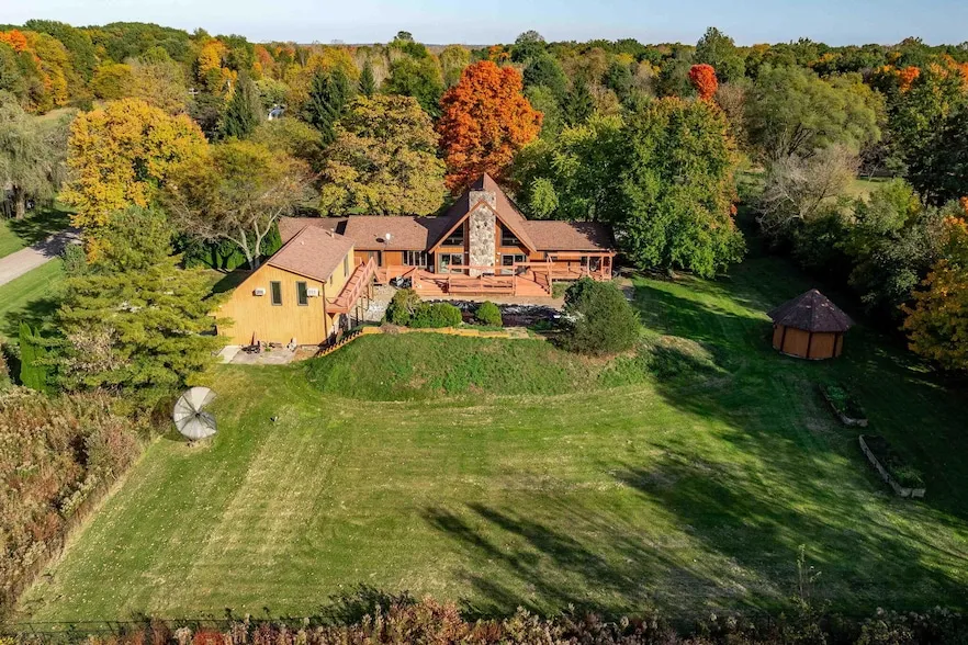 This stunning property offers the perfect blend of luxury and convenience, located just minutes from a golf course. Situated on 5 acres, the home features a beautiful wrap-around deck that seamlessly connects the main house to a second garage, complete with a charming carriage house above. Inside, you'll find a cozy library, a spacious great room with a fireplace, and an expansive lower level that includes a game room/rec room, gym, and workshop, making it an ideal space for both relaxation and productivity. Outdoor enthusiasts will appreciate the in-ground pool with a unique cabana cave, perfect for summer entertainment. The property benefits from low Washtenaw taxes and falls within the highly desirable Plymouth-Canton school district.