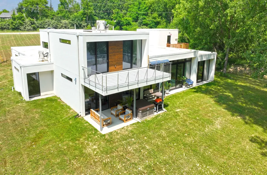 The BENEFIT of this property... This spectacular lakefront custom-designed home built with ALUPROF Triple pane Passive House certified (European and American standards).... Let us begin the basics: 4 to 5 Bedrooms, Master Suite, In-Law Suite, Ensuites, 4 Full Bathrooms, 1 Half Bathroom, OVER 3 Acres, direct private waterfront on 10-acre spring fed lake, Oversized 2 Car Garage with electric car chargers, nearly 4,000 square feet of stellar finished space, Ann Arbor Schools, Ann Arbor Mailing, open concept modern style. Now the spectacular stuff... Air tightness to passive house level, Potential NETZERO and LEED Platinum certification, Ultra high R-value (30/60/90) insulation (R80-Roof, R90-Floor), Designed to take direct sunlight to heat the concrete and marble slab of the house during the winter months. And there is so much more... All Steel Framing, Guardian wall panels - Structural insulated panels set in steel studs, Structural foam - 2 feet under the slab / 15" thick roof and 8" walls (reinforced steel), Swiss Air handler ERV system, Aluminum windows imported from Poland, Heat pumps with individual units for bedrooms, All bathroom sinks are equipped with an instant hot water supply, Heated and insulated 30' garage with two electrical automobile chargers, Bedrooms - Outside rolling shutters, Custom-designed and handmade woodworking around the house with white oak and walnut, pantry kitchen with dishwasher and prep area, Commercial Durolast flat roof with room for expansion, Marble flooring, marble shower walls and marble kitchen backsplash, Carlyle wood flooring, very rare Japanese charred wood siding, Commercial grade Stucco, Two Electric Car Chargers, Touchless faucet with instant hot water in every faucet. Check out the high-end appliances: 54" La-Canche oven - Handmade in France (6 figures), Gaggenau 30" Column refrigerator, Gaggenau 24" column freezer, Gaggenau 24" column wine cooler, Bosch built-in expresso maker, Two dishwashers (Bosch and Gaggenau), Drawer microwave. Additional OPTIONS: Heated front and back patios, Wired for Savant System Inteligent Control, Heated dunk pool and heated lap pool, Hestan grill ($12000), Rooftop sunroom, Rooftop Garden. NOTE: Most house is ADA accessible. Convenient to everything and anything you need yet peaceful tranquil waterfront setting. Come visit the home you have dreamed about. Need a Jumbo, Conventional or Bridge? We have great lenders to serve you. Need help making the transition from your current home to a NEW home, call for various lending options and free market analysis. Tour today or at one of the many planned Open Houses.