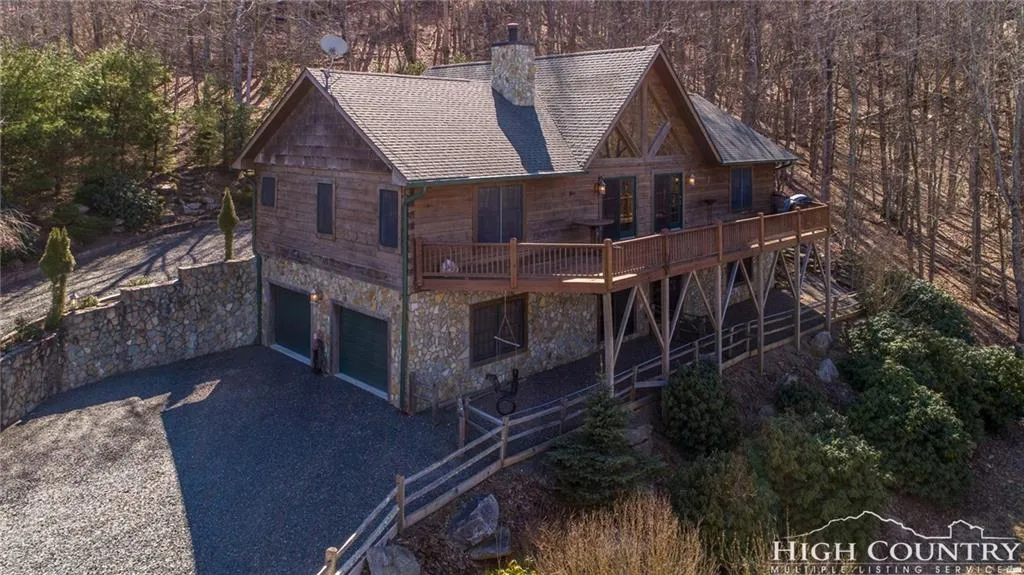ENTERTAIN FAMILY AND FRIENDS in this beautiful log home on a beautifully landscaped acre lot! This well-built home includes large open living, dining, and well-equipped kitchen, including granite countertops and "eat-at bar" area with vaulted ceilings and natural light that leads to a large deck with a long-range view. 3 bedrooms including Master suite with skylights, soaking tub, and large walk-in closet, plus convenient laundry area, and full hall bath makes for one-level living, BUT WAIT....finished basement has full bath, and spacious area with freestanding gas stove perfect as a game room, workout room, entertainment center with bonus room that is now being used for extra sleeping area, but would be perfect office space. Outside: You will find a gardeners paradise, an amazing area for a firepit or a bocce court. Just a short drive to Valle Crucis, Banner Elk, and Boone.