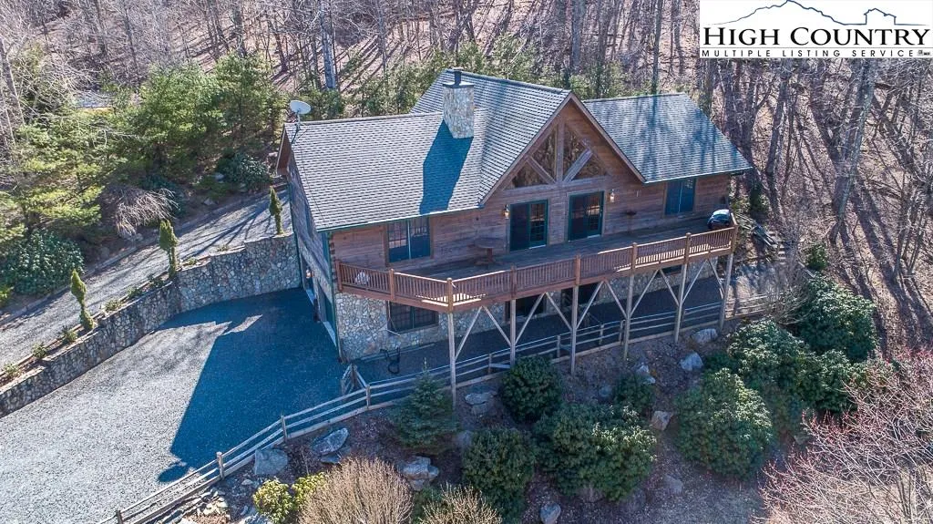 VALLE CRUCIS AREA Log Home with view and plenty of room for family and friends. One level living. Wood floors throughout. Walk across the impressive front porch and enter the great room. Soaring tongue and groove ceilings, wall of windows and stone gas fireplace. Large deck to take in the view and cool mountain air. Granite kitchen with island eat in bar. Split bedroom plan with a large master that opens to the expansive deck. Master bath boasts a granite vanity with double sinks, soaking tub and large walk in shower. Walk-in closet and laundry there as well. Walk across the living room to 2 other bedrooms separated by a full bath with granite and tile. Downstairs is a huge family room that can be creatively used. There is also a full bonus room for 4th large sleeping area and full bath as well. Full 2 car garage and plenty of parking for all on 2 levels. The property is manicured with amazing landscaping incorporating walking paths and sitting areas to relive your stress. Great yard for a fire pit and spot for a hot tub downstairs. Prime location to Boone, Banner Elk and Blowing Rock. A short drive to the ski slopes, hiking, rafting. Would do well as a short term rental.