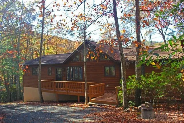 The PERFECT mountain get-a-way. Beautiful Mountain Home with many updates sits on large double lot (0.91 acres). New wood floors, kitchen with new granite counter tops and custom kitchen cabinetry, new decks,new french doors in great room that leads to the large wrap around deck, new interior & exterior lighting, new exterior stain on siding & decks. Wonderful large great room with tongue & groove ceiling and lovely large stone wood burning fireplace. Big picturesque windows. Easy access with large circular driveway. Located in a peaceful setting and in a beautiful gated community with a clubhouse that has a recreation center & fitness center, kitchen, swimming pool, lakes for canoeing or kayaking, hiking trails, waterfalls, camp sites, tennis courts and much more! You will love this home and the location!