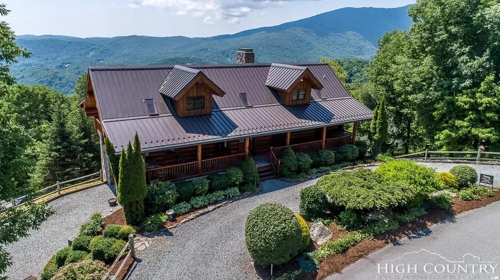 PRICED TO SELL FAST!! Exquisite One of A kind Log Home FURNISHED with GIANT CANADIAN WESTERN CEDAR LOGS. MILLION DOLLAR VIEWS!!. 3BR 3-1/2 BATH. Custom home with wood floors. Granite kitchen with custom smartly designed cabinets and stainless appliances. Living room with tall tongue and groove ceilings, LARGE BEAMS and stone fireplace. Large deck to take in the AMAZING views of Grandfather and beyond. Master on main level with 2nd fireplace and large walk-in closet. Nice dining area with wet bar and view Half bath and wet bar on main level. Master bath has granite, claw foot tub and large walk-in tiled shower. Big view from this master with its own fireplace. Loft with usable space, office and a large bedroom with full bathroom. Downstairs is a large family room with wood stove, large bedroom and full bath plus lots of storage. 2 car garage plus a workshop and custom large safe. Commercial grade steel roof. Lushly landscaped over sized lot of 1.09 acres. This location has easy access to Boone, Sugar Ski, grocery stores and restaurants all in approx. 15 minutes or less. THIS IS A ONE OF KIND LOG PARADISE!!! GENERATOR