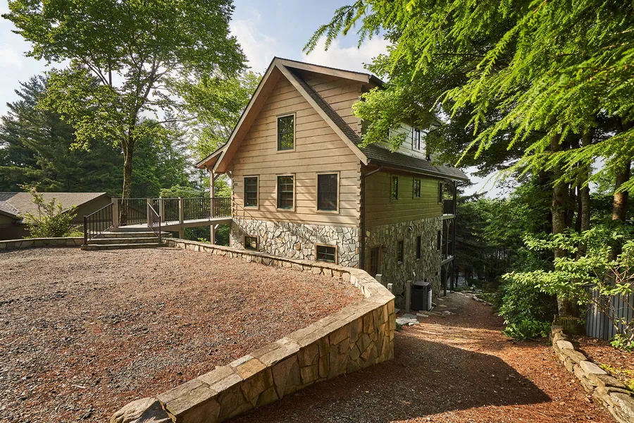 Superior and quality in the Village of Blowing Rock. Perfectly maintained since being built of finest materials and completed in 2009. Flat entry into main living level with a covered wraparound porch. Another covered wraparound porch on the lower level providing great outdoor living space. Three bedrooms and three baths (2 master suites) offering great separation and privacy. True log home with lots of windows and light, which is not common in most log homes. Open floor plan with stainless steel appliances and granite countertops in the kitchen. High-end lighting and wide-plank oak hardwood flooring throughout with tile in baths and laundry. Stone wood-burning fireplace with Heatilator and gas connection. Stone clad exterior on lower level. Exterior totally painted in 2021. Location, location, location. Enjoy walking to downtown or to Bass Lake via sidewalk the entire way. Sidewalk curr...