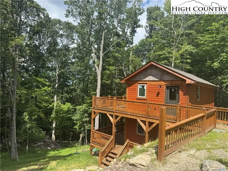 Furnished newly constructed cabin located between Blowing Rock and Boone. Great investment property! Short term rentals are permitted. Or, will this property be for your AppState student? Or, will it be a deferred maintenance second home? Climb up Rainbow Mountain to a left on Ollie Trail. Level entry from the parking area. Enter the top floor into the living room with a sliding glass door to the pressure treated stained deck. Wide porch will accommodate a table and Adirondack chairs to lounge on. Open floor plan to the kitchen area with a window west-facing Mountain view. Stainless steel appliances and double sink. Warm tongue in groove wood walls. Solid wooden doors. Oil rubbed bronze knobs and lighting fixtures throughout. Full bathroom and tiled shower. Allen Roth vanities. Go downstairs to two bedrooms and another full bathroom. Walk out either bedroom to the lower deck, which can accommodate a small hot tub. Rainbow Mountain is a quiet neighborhood set between Boone and Blowing Rock, recently regraded. Great access to High Country fun, hiking, Blue Ridge Parkway Trails, Appstate University and the charming village of Blowing Rock. 5 Minutes from the Boone Mall. Great seasonal view off the upper and lower back porches.