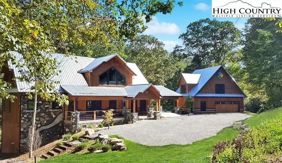 A true showstopper on the Watauga River, this income-generating mountain retreat is anything but ordinary. Imagine arriving at your fully furnished, mountain-contemporary luxury cabin, where every detail—from the soaring vaulted ceilings to the striking industrial finishes—feels pulled straight from a design magazine. This property delivers the river’s most marvelous displays, against the lush backdrop of the Blue Ridge Mountains. Step outside and you’ll find outdoor living dialed up to eleven: spacious decks, a hot tub perched above the river, two firepits for late-night storytelling, a quiet fishing pond, and your own private stretch of river, perfect for tubing, swimming, fishing, kayaking, or just listening to the babbling water flow by. Inside, the open-concept layout is perfect for entertaining, while the main house's three bedrooms each offer spa-like ensuite baths that make every morning a five-star getaway. The detached two-car garage isn’t just for parking—the second story offers a sprawling game room with a pool table, entertainment center, kitchenette, and a fourth full bath, making it a hub for fun and relaxation. And that's not all. You also enjoy access to a shared riverfront common area, for plenty of riverfront space to play and relax. Whether you’re looking for a high-end rental powerhouse, or just a luxury sanctuary by the river, this is mountain living at it finest. Come see this property today!