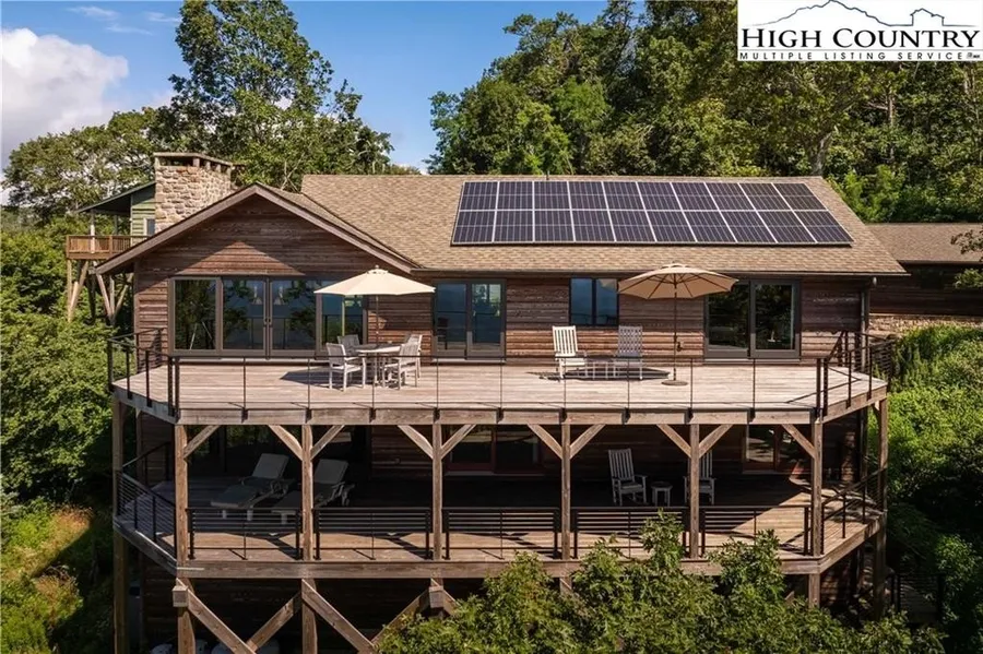 Above Pisgah National Forest, this remarkable home offers unparalleled 270-degree views, capturing vistas that stretch from the rolling Blue Ridge Mountains to the Charlotte skyline and on westward to quintessential views of Grandfather Mountain and Mt. Mitchell's dramatic sunsets. The constantly shifting light and shadows across the landscape create a living masterpiece, redefining the meaning of a million-dollar view. No detail has been overlooked in the comprehensive renovation of this mountain retreat. Designed to complement its breathtaking surroundings, the home boasts expansive newly upgraded deck space, crafted for alfresco dining, entertaining or stargazing. Large windows flood the interior with natural light, framing panoramic views from every room and creating a seamless connection to the outdoors. Every aspect of the home has been thoughtfully enhanced to achieve a balance of elegance, comfort and modern convenience. Updates include high-end appliances and utilities, handcrafted timber frame details, a custom designer walk-in closet and refined finishes throughout. These improvements are matched by technological advancements such as an 8-kilowatt solar system and LED dark-sky compliant exterior lighting, ensuring a harmonious blend of sustainability and luxury. The interior exudes warmth and sophistication, with inviting spaces designed for entertaining and relaxation. From the welcoming great room with a fieldstone gas fireplace to thoughtfully designed bedrooms, this home offers a blend of understated elegance and modern appeal. Just moments from Blowing Rock’s charming shops, fine dining and cultural attractions, this residence provides a secluded sanctuary with views that are one-of-a-kind. Experience the ultimate in luxury mountain living, crafted to perfection and ready to be enjoyed. Please see full list of seller's improvement attached to listing. Detached garage and has electric vehicle cable ready to garage.