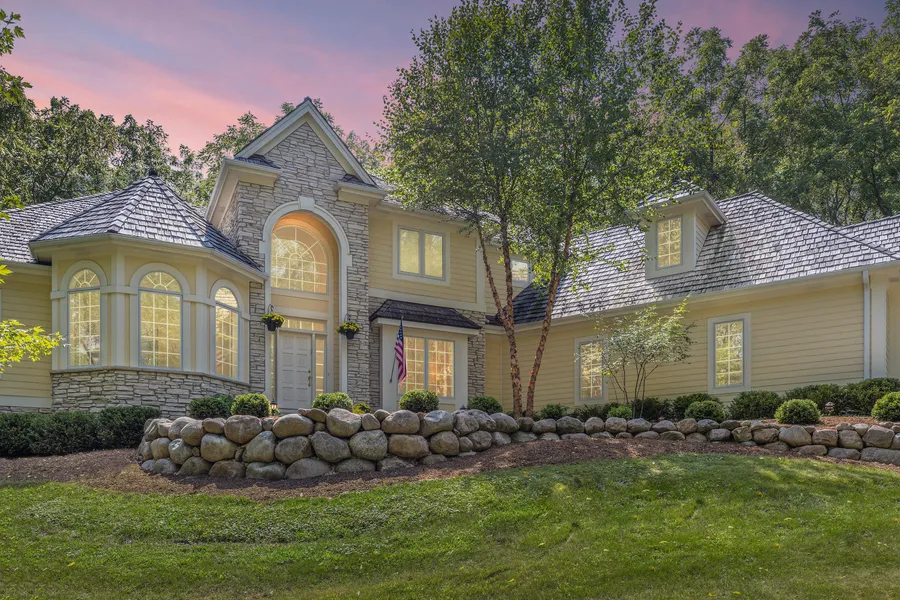 As you step into the 18 ft. foyer, onto Brazilian Cherrywood floors, this custom built home will invite you to notice special features. A 31 ft. kitchen /keeping room glows w/1 of 3 fireplaces, pristine granite, spotless white woodwork abounds. The breakfast rm/w walls of windows & French doors overlooks gardens & gazebo. A 25 ft. Gr. Rm. boasts a travertine marble faced F.P. & BIBCSoaring windows to view natures finest show of color and textures in your woodlands. As you step into the master suite cares of the day vanish! The 3rd F.P. in the sitting rm area, offers a respite, or perhaps the whirlpool tub calls you? In addition, all 3 Br. are suites w/ WIC and full baths. There is basement ingress/egress from the 3.5 gr. A wet bar in the finished L.L.. & walk out to the hot tub!
