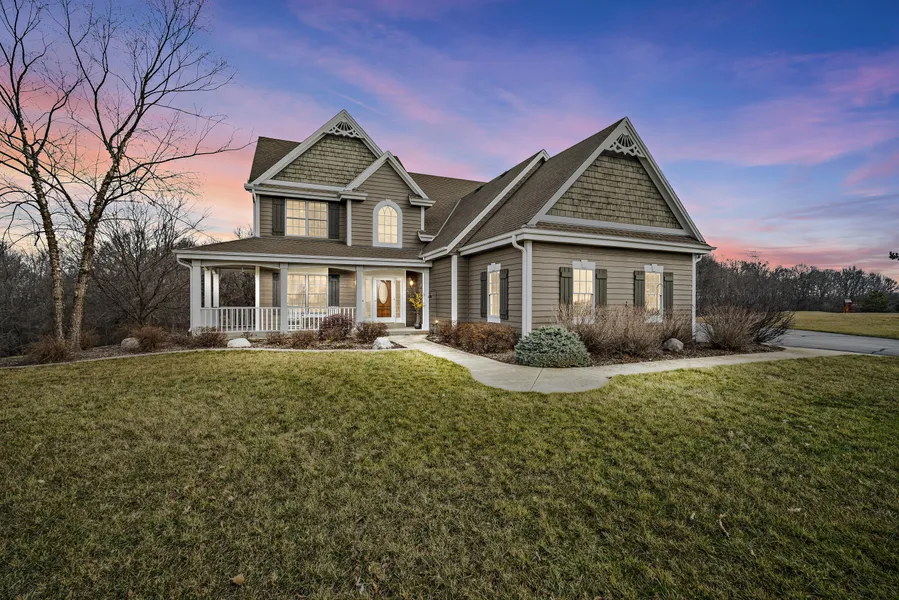 This executive retreat located in prestigious Coyote Crossing subdivision is convenient to both Milwaukee & Chicago. Located on a cul-du-sac on a serene wooded backdrop-- enjoy visits from the wildlife! Be the ultimate host in a home tailored for stylish living & entertainment! You won't run out of space in this 4+ bed, 3.5 bath. LL w/ full walk out perfect for in-law potential. Too many oohs & ahhs to list-- grand entrance w/ open concept 1st flr offering double-sided GFP & butler pantry. 4 generous sized BRs on upper level, 2 w/ WIC. Get ready for summer, running through the sprinklers, picnics on the deck, enjoying a glass of wine at night in the hot tub. All this + 13 month home warranty for peace of mind. There's nothing left to do but say, ''It feels so good to be home!''