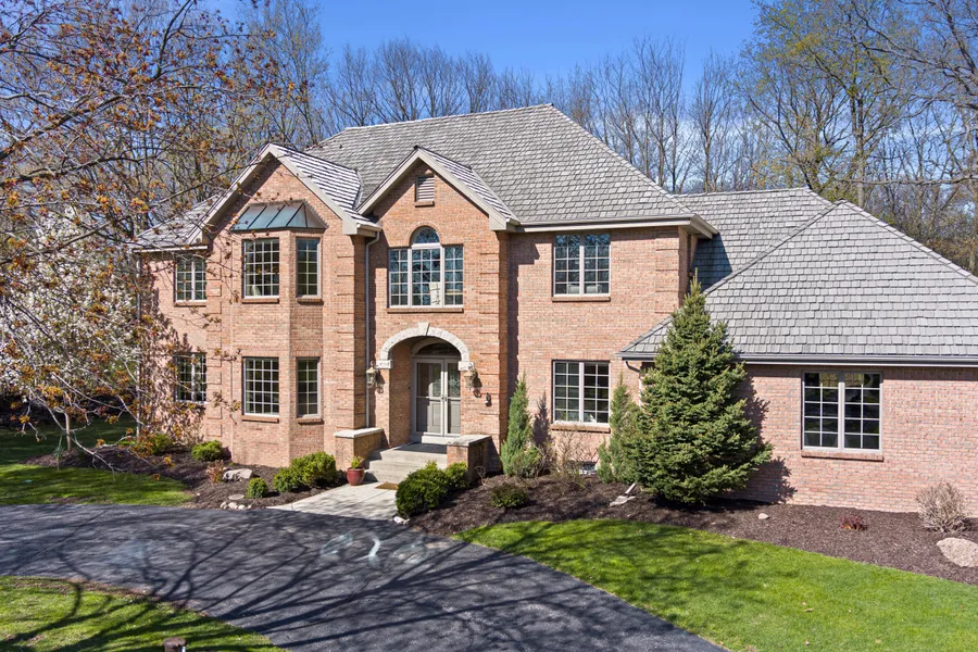 Stunning Pewaukee home located on a private wooded cul de sac in the premier Hawksnest subdivision, with one acre of park-like setting overlooking the Ice Age Trail conservancy. The two-story foyer welcomes you into this exquisite five-bedroom, four-and-a-half-bath home. The gourmet kitchen impresses with granite counters, white cabinetry, an island, double ovens, an oversized refrigerator, and Miele gas cooktop. Enjoy formal dining and an eat-in kitchen. Windows surround the great room with cathedral ceilings and a natural fireplace or relax by the gas fireplace in the formal living room with bay window. The luxurious primary suite includes a beautiful bath, porch, and large walk-in closet. Bonus bedroom with ensuite and laundry conveniently located upstairs. A full kitchen and bath are also located on the walk-out lower level. Enjoy walking trails, tennis courts, a playground, and soccer all within the subdivision.
