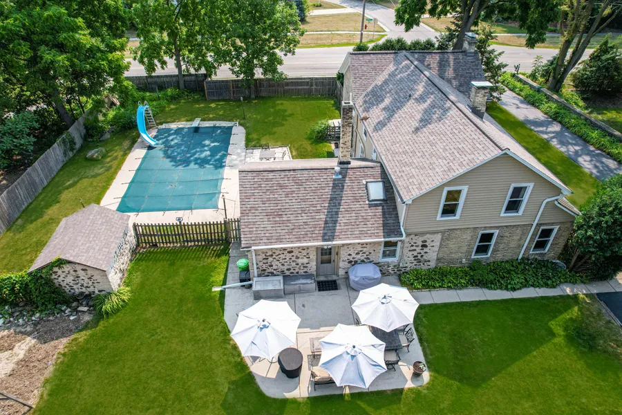Rare opportunity to own nearly two acres in the heart of the Elmbrook area next to Fox Brook Park, near shopping, great schools, and the historic downtown district. This remarkable property consists of two dwellings with a tennis/pickleball court, four garage spaces, and plenty of room to entertain. The main home has four bedrooms and two full baths, an updated kitchen with quartz counters, stainless steel appliances, and a farmhouse sink. You will love the hardwood floors, original brick accent wall, and two fireplaces. The 3,000 square foot ''guest barn'' has an oversized gathering space with a wood beam vaulted ceiling, original stone accent walls, fireplace, newer kitchen with quartz counters, and stainless steel appliances. A huge bedroom with en suite and walk-in closet, laundry, and cool venue area with loft space complete the guest barn. Bring your ideas, friends, and family and ...