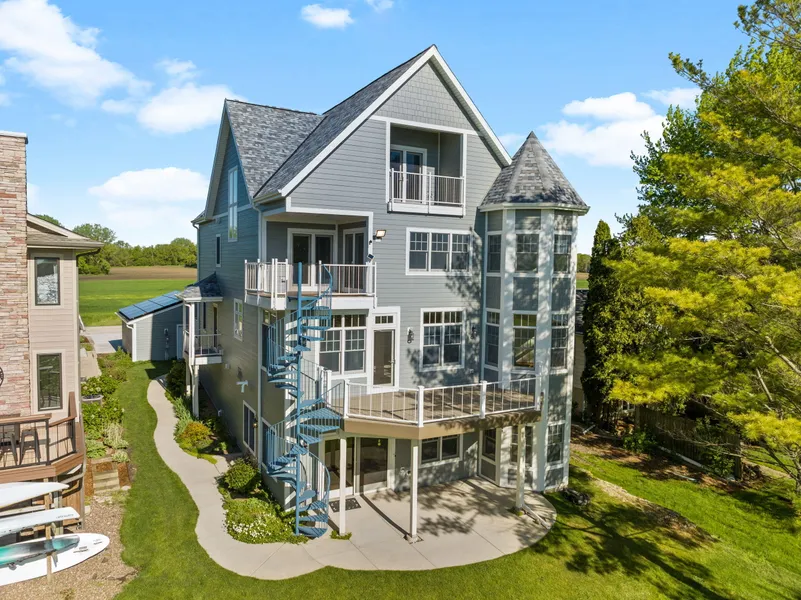 It's not just a home, it's a lifestyle! Exceptional custom-built home w/ breath taking views situated on Bass Bay of Big Muskego Lake. Enjoy boating, fishing, paddleboarding, canoeing, tubing, swimming, kayaking, jet & water skiing. This expansive one-owner home offers about 50ft of lake frontage, boathouse & private pier. Each level of home has stunning lake views w/ views to be seen for miles from 3rd floor. An entertainers dream with walk-out LL featuring a family room, half KIT & full BA w/ an oversized patio & huge backyard. Find loads of natural light, 2 story foyer, GFP, wood floors, crown molding, high ceilings, 6 panel doors, heated flooring in basement, MF laundry, unique staircases & much more! Chef's KIT with marble counters, expansive island, WIP & plenty of cabinet space.