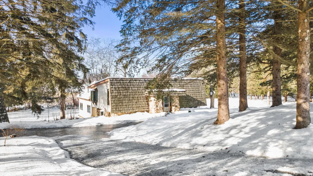 Beautifully set on 2+ acres, this unique 3-bedroom home offers exceptional potential and striking architectural charm. Enjoy a convenient main-level primary bedroom, nicely updated bathrooms, and a well-designed kitchen. The spacious great room features soaring ceilings and stunning views, creating an inviting space for everyday living and entertaining. Bright, open areas provide endless possibilities to personalize and update to your style. With its serene setting, expansive yard, and standout design, this property is a rare opportunity to create your dream retreat.