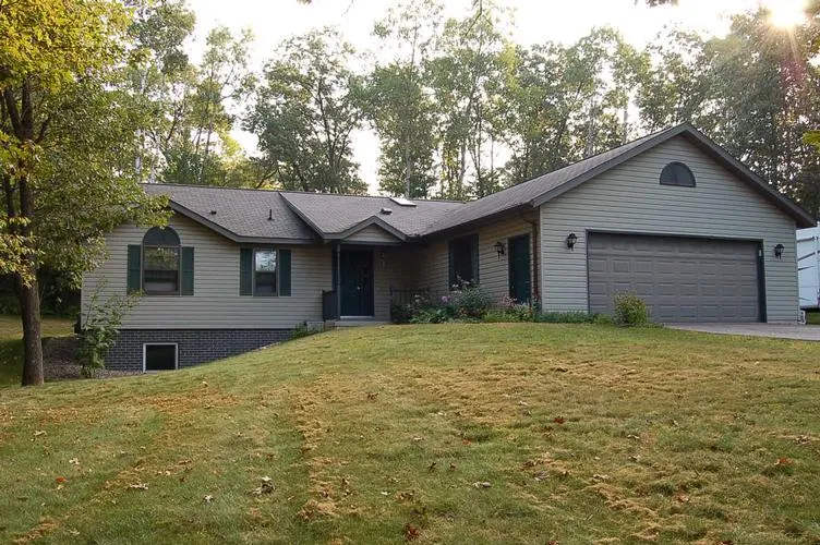 There is a lot to find smart and attractive about this home. It is an energy efficient house located on 2.5 acres just off Hwy 54 west of Waupaca. The lot and home have been well maintained with a nice long blacktopped drive and park-like lush setting. The property is surrounded by woods while having a garden area, back deck for nature views, perennial beds, and manicured lawn areas. It provides for privacy, optimum views for change of seasons, and the pleasure of watching the wildlife including deer and sandhill crane. Inside you have a smartly designed structure with a split bedroom design, main floor laundry room, vaulted ceiling in great room, big windows for natural lighting, and room to grow with a full basement that has an egress window. You could add a family room, additional bedrooms to be near the already built 3rd full bathroom found in the basement. Property has country feel ...