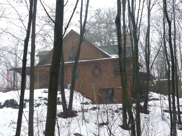 What could be better than a majestic hilltop setting on 8 acres of privacy, woods and a panoramic view of all the beauty nature offers. There is something better: a custom-built log home from which to enjoy it all. This combination provides a secluded setting for a showcase 2123 sq foot log home with 3 large bedrooms. The house features a gourmet kitchen with custom cherry cabinets, granite counters, stainless refrigerator, convection oven, and open concept dining area. This soars to a great room with a 2-story stone fireplace and plenty of windows to enjoy the vantage point. Main floor also has a 17 x 14 foot master bedroom with private bath and outdoor deck. Nice long drive leaves you a great sense of privacy.
