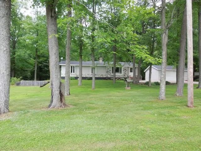Ranch-style home is on 4 heavily wooded acres just north of town. The 2350 sq foot home has been updated including the addition of a new great room with patio doors to a huge deck. Home features 3 bedrooms, main floor laundry, formal dining room and partially finished basement. This basement space has bonus bedroom, game room, TV area option. Nice setting provides great wildlife watching and privacy. There is a detached 2.5-car garage for vehicles and toys. Property is just down the road from Royal Oaks Public Golf Course.