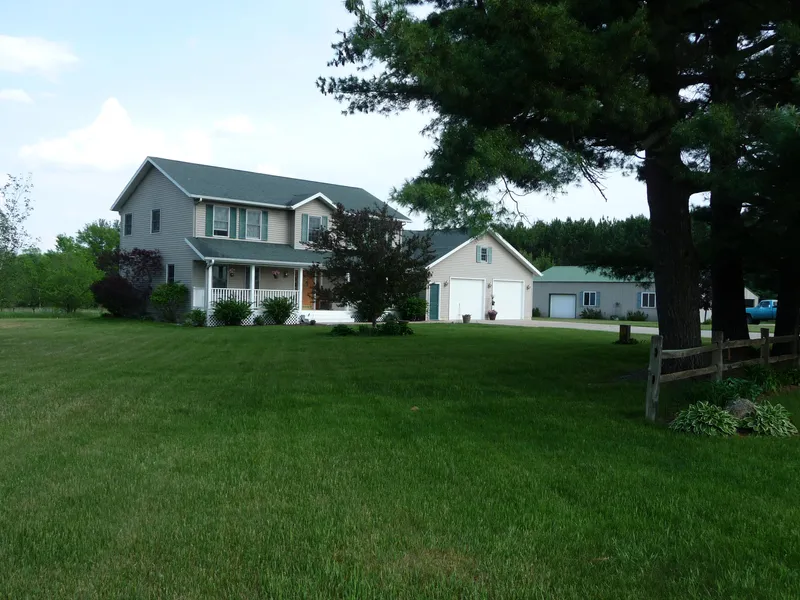 Nice country package could be called a country estate with a 10 +/- AC playground, a heated 30 x 54 foot pole building, and a stately 4-bedroom home with master suite. The well-constructed home has 3690 square feet of finished living space. It includes 4 bedrooms, 3 full baths and 2 half baths. It also features a formal dining room, a home office, a four season room, and convenient main floor laundry. Enjoy upgrades such as hardwood flooring, stone fireplace and master suite Jacuzzi. The pole building is insulated and heated. It features 2 overhead doors and an office. Property is just north of the city approximately 3 miles for convenient country location at the end of a quiet road. Take a tour of this very nice property by calling Scott Salan at 715-281-8810.