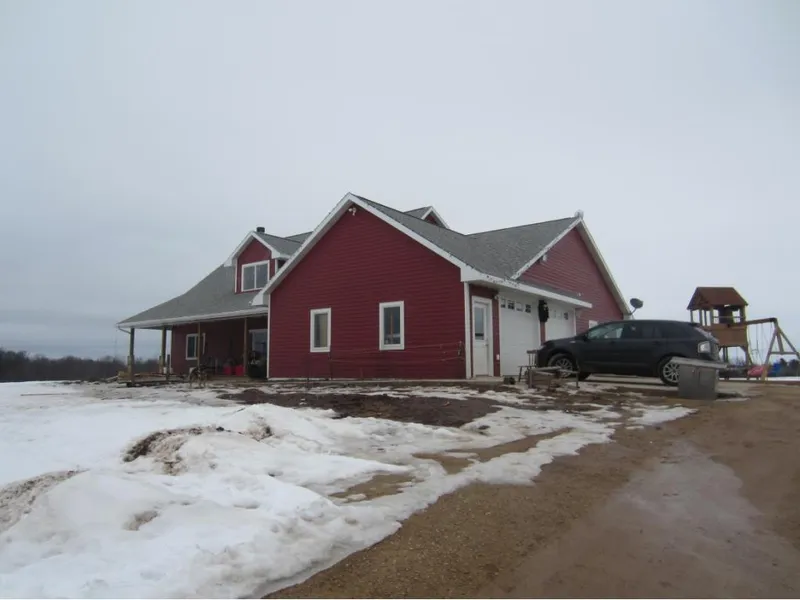 The exterior of the property is set up for an operating Farm. Several farm buildings, working beef feedlot w/manure pit, additional storage shed, and pond.