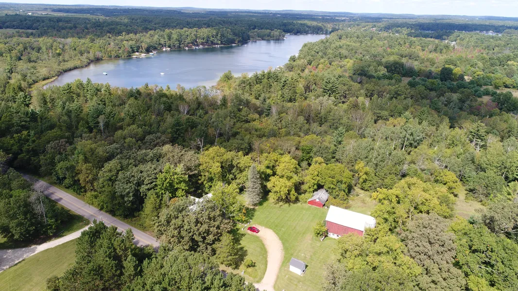 Chain' O Lakes private retreat hobby farm on 21+Acres with Long Lake & Crystal River frontage. 1st time offered this unique property offers the ultimate recreational compound with 325 ft of sand beach on Long Lake & 1400 ft of Crystal River frontage set among woods, trails & rolling hills.