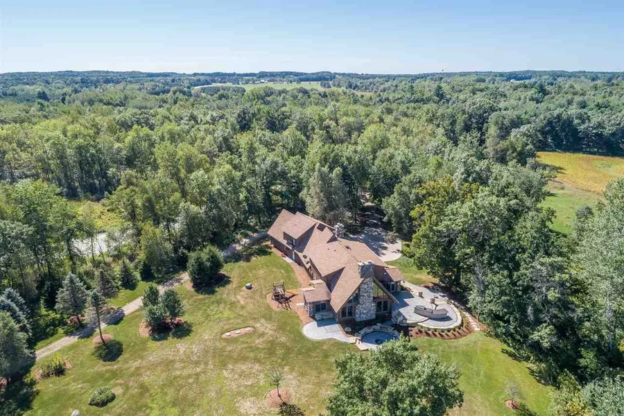 Private paradise located just 25 minutes from Appleton, Oshkosh, Green Bay. Great Rm w/vaulted ceiling, Wood burning FP & wall of windows overlook custom dual patios & outdoor entertaining area which is steps to private pond. Gorgeous kitchen w/cherry cabinets, granite counters & tiled backsplash. 1st FL Master BR w/FP & fully updated bath w/tiled shower. 1st FL office. Unique suite w/kitchen, granite counters & separate access to garage. Loads of storage thru out. Enjoy the serenity this property offers. Setting on 7.24 +/- acres of wood privacy. Extensive Seller update list.