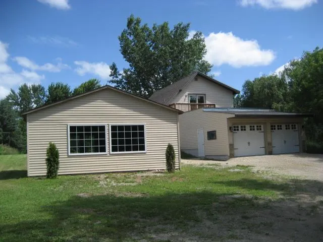 Totally refinished Cape Cod-style home is brand new again. Featuring hardwood floors, tile flooring, new carpet, new solid 6-panel doors, and custom trim and baseboards. Home also has new kitchen cabinetry and new cabinets in bath along with new countertops, sinks and fixtures. Property has new furnace and new vinyl siding with stone accents. There is a detached 21 x 19 ft studio, deck, porch, and 2-car attached garage. Setting includes frontage on Rat River, mature trees and natural pond.