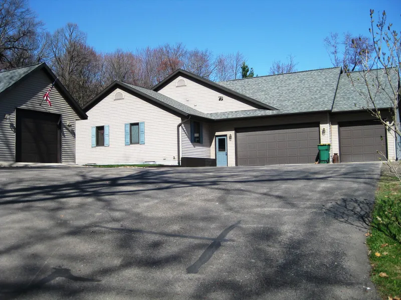 Hilltop home for sale in Scandinavia sits on 5.89 acres. The open-concept design is perfect for country living and great views. It has convenient main floor living including main floor laundry and main floor master bedroom. Split bedroom floor plan has a total of 4 bedrooms, 2.5 baths, dining area, home office and full basement. Details including floor to ceiling stone fireplace, stainless steel appliances, and tons of closet space. There is an attached 3-car garage plus a detached bonus garage. Property has been nicely landscaped for country home curb appeal. Priced below assessed value and includes an above ground swimming pool. Call Agent Tiffany at 715-281-0661 for a personal tour of this well-designed and maintained property.
