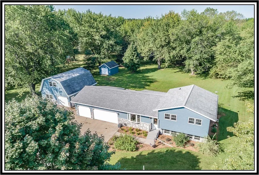 IMPECCABLY MAINTAINED & MOVE-IN READY - 5BD/2BA Quad w/3.5 car ATT gar, 24x28 DET Shop Garage w/REC Room & ADDT STORAGE Shed just seconds from NLHS on 5+ ACRES! BEAUTIFUL Decor w/OPEN CONCEPT Kitchen w/Cabinets Galore, HUGE Center Island, Coffee Nook & Wall Pantry PLUS HUGE Dining Area! INCREDIBLE Panoramic Views from 4 Season Room, Spacious FAM/GAME/REC Rm, Office Area, HUGE Master BD PLUS 4 ADDT Bedrooms & 2 Full Baths! Seller Updates Top to Bottom, Property consists of two parcels - one in City of New London, one in Town of Mukwa. City sewer and water available. Unfin rm in LL = laundry.