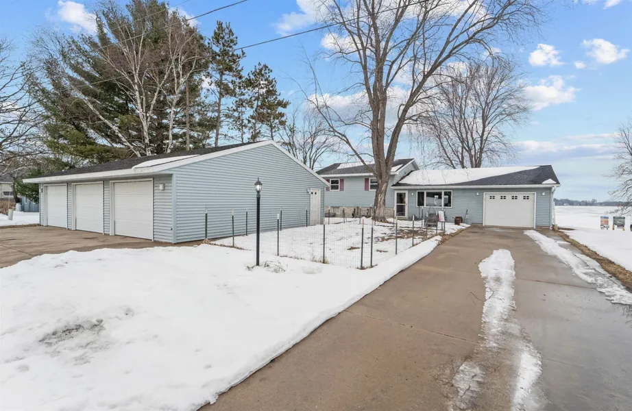 Gorgeous Lake Views! Beautiful kitchen sets the tone for this 3BD, 1-2 BA home. Loads of natural light and picturesque views, in addition to gorgeous cabinetry and newer appliances are sure to please. Cozy living and dining area with deck access complete this level. Upstairs hosts 3 sizable bedrooms and full bath with shower and jet tub complete this level. LL hosts a family room with pellet stove and more lake views. Utility room with unfinished bathroom and walk out. 90+/- ft of frontage, a 30x40 detached garage, 1 car attached garage, and a public boat landing adjacent to the property. Welcome Home!