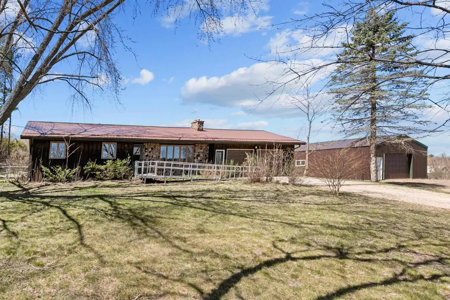 Charming 3 bed ranch nestled on 1.9 acres, boasting a 30x50' pole shed & deeded water access to Bear Lake! Nice quiet country location with a fenced back yard & 2 patio areas. Inside, discover a delightful floor plan with a 23x17' cabin room that features cathedral ceilings with backyard access. New vinyl kitchen flooring & carpets throughout! Cozy up to the wood burning fireplace in the LR or finish hooking up the freestanding gas fireplace stationed in the cabin room. Oversize 2 car attached garage compliments the home. 30x50' Cleary Pole Building with concrete floors ready for immediate use. Deeded waterfront access-see attached map, is yours to enjoy. Newer metal roof, hot water & forced air heat & central air. Seller requests 48 hours for binding acceptance on all offers!