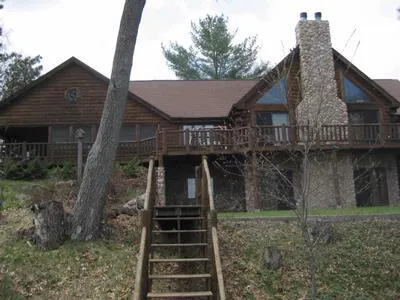 When 1 lake isn't enought why not have 2 lakes and the perfect house to enjoy the setting? Property has frontage on Bass Lake and McAllister Lake with a dock on each for total water front of approximately 550 feet. And the log home has 2 kitchens and 2 levels so you can easily accommodate an additional family who prefer private quarters. Or, home is perfect for large groups with a total of 4 bedrooms and 3.5 baths, 2 stone wood burning fireplaces, walkout basement, 3-season porch, home office, LL workshop. What a great combination of unique setting and well-planned living spaces. Additional features include: huge living room, 3 decks, formal dining, custom tile flooring/counters, cooking island, loft area, Jenn-Aire cooktop, newer appliances, main floor laundry with appliances, main floor master suite, and 3-car garage with bonus storage loft. Lower level also has family room with private entrance from the lakeside patio. Log details and wood finishes inside set the mood for rustic northwoods architecture yet the smart detail will please the most discriminating taste. Outside find the 2 docks to fish for trout, bass, pike, bluegill or for boats and water toys. Yard is landscaped with many shade trees and a bonus tree house. Take the virtual tour to see all the detail and options for entertaining or creative ownership.