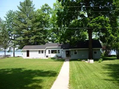 This lakefront home is on the county's largest lake with 95 +/- feet of frontage on 1000 acre White Lake in Weyauwega. The shoreline here is sandy for fun on the water including fishing, water skiing, or even duck hunting. The well maintained ranch-style home has 3 bedrooms, 2 baths and a den/home office. You'll love entertaining in your formal dining room or on the large patio for fabulous views over the lake. Or take a walk to the private dock and watch the wildlife or seasons change in the water's reflection. Home has main floor laundry, built-in cabinetry, newer kitchen appliances, and 6-inch well. Property has 2+ car garage and basement. Lot is over 300 feet deep with landscaped areas around the home. Home warranty included.