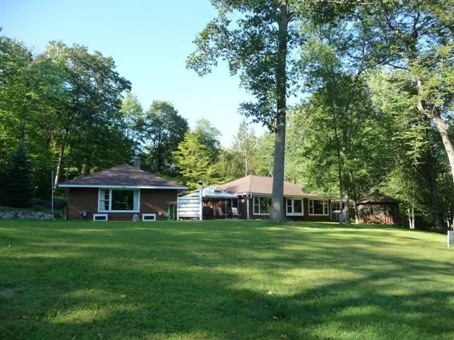 Views from every angle of the Waupaca River await you as you drive down the private road to this property. The road is lined with towering trees making you believe you are lost in the country. Then the trees give way to a solidly built ranch home perched on a bend of the shore. The house is situated perfectly to see the water rush toward you then gurgle by as if it were a near miss. Then there is the gazebo that provides great outdoor space to enjoy the sights and sounds. The brick paver and trex decking patio adds open air living space just outside the kitchen for easy and convenient entertaining. Inside your eyes will never lose sight of the water. Move from room to room and each provides large river-facing windows. Property is in the town of Farmington hidden by Swan Park and Brainard's Bridge for easy access to the city of Waupaca. Many new updates make this home move-in ready with 3 bedrooms and 3 full baths. Single story home provides for convenient main floor living complete with formal dining room, living room, family room, and main floor laundry. The 2-car garage has a workshop and guest apartment facing the river. This is a fun little summer getaway area for guests or grandkids or find your privacy here to read a book or work on a project. Main house is 1900 square feet of living space. Property can be purchased to own all 32 acres and 2000 feet of Waupaca River frontage. Great setting, close to town, if you can find it.....